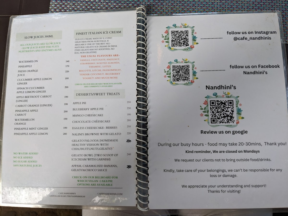 With glowing reviews from customers like Sidda Lee, who describes Nandhini’s as a must-visit spot post-sadhana, and EC praising its hidden gem status, it’s clear that this café isn’t just about food. It’s about creating an experience—a moment away from the hustle where you can soak in the tranquility that surrounds you.